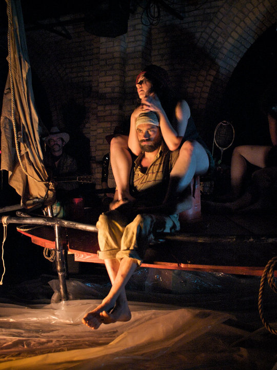 Finn, Valentine and Louie float aimlessly through the ocean on a home-made shanty boat. They cannot go back to land; they cannot steer; they do not want to talk about it. When the mysterious Dog-Man shows up, it seems like a good excuse to open up the last can of peaches in heavy syrup and have a party.